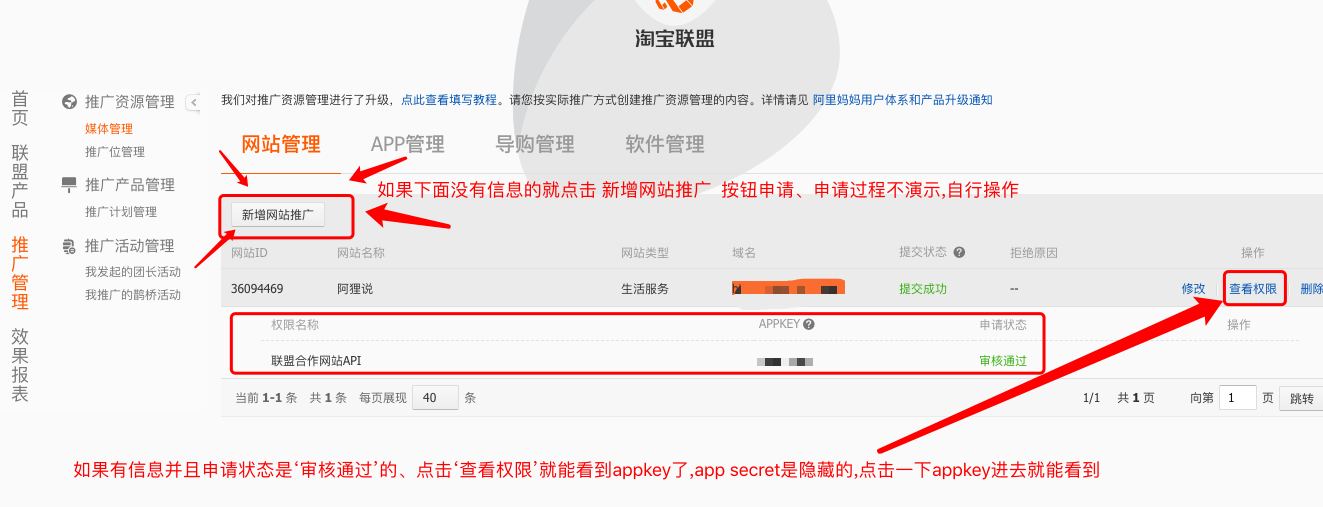 打开淘宝联盟链接: https://pub.alimama.com/myunion.htm#!/manage/site/site