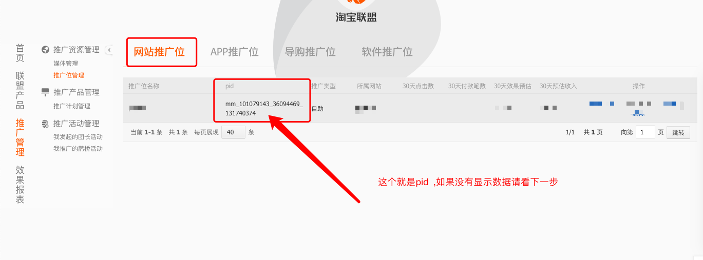 4. 其中pid参数必须是淘宝联盟->网站推广位 的pid(没有这个推广位的pid请申请),其它位置的pid将获取不到商品数据、详细教程请点击 `插件设置帮助`