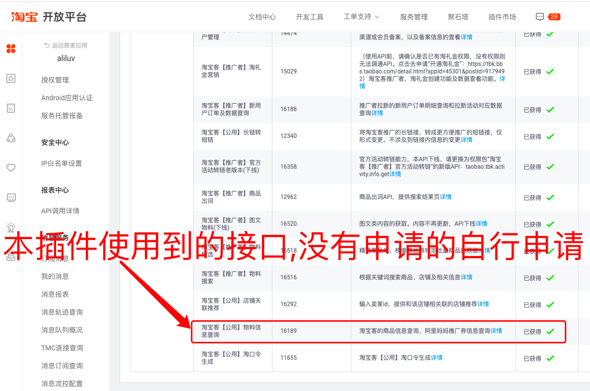 注意(本插件需要用到淘宝接口,没有权限请自行申请):https://open.taobao.com/api.htm?docId=35896&docType=2&scopeId=16516